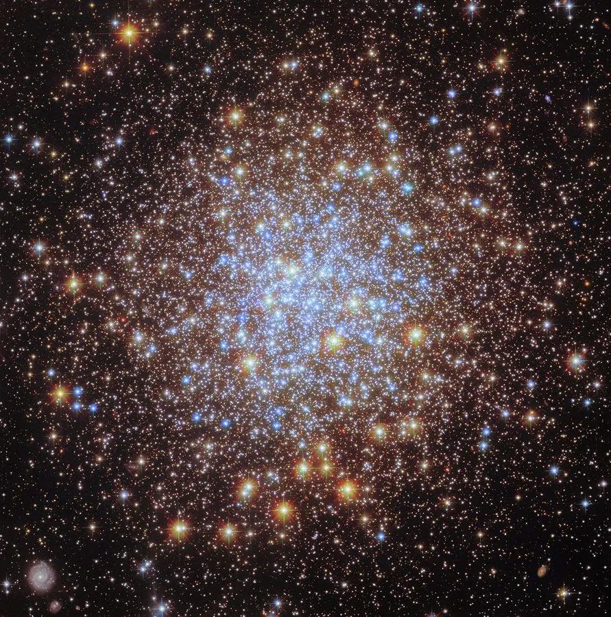 La nueva imagen revela un núcleo azulado y brillante, rodeado de estrellas más amarillas, extendiéndose hasta los bordes de la imagen. Las estrellas azules, más calientes, representan objetos masivos que han agotado buena parte de su combustible de hidrógeno, mientras que las rojas brillantes son gigantes rojas de menor masa. Esta diversidad de colores ofrece a los astrónomos valiosa información sobre la evolución estelar y la historia temprana de la formación galáctica.