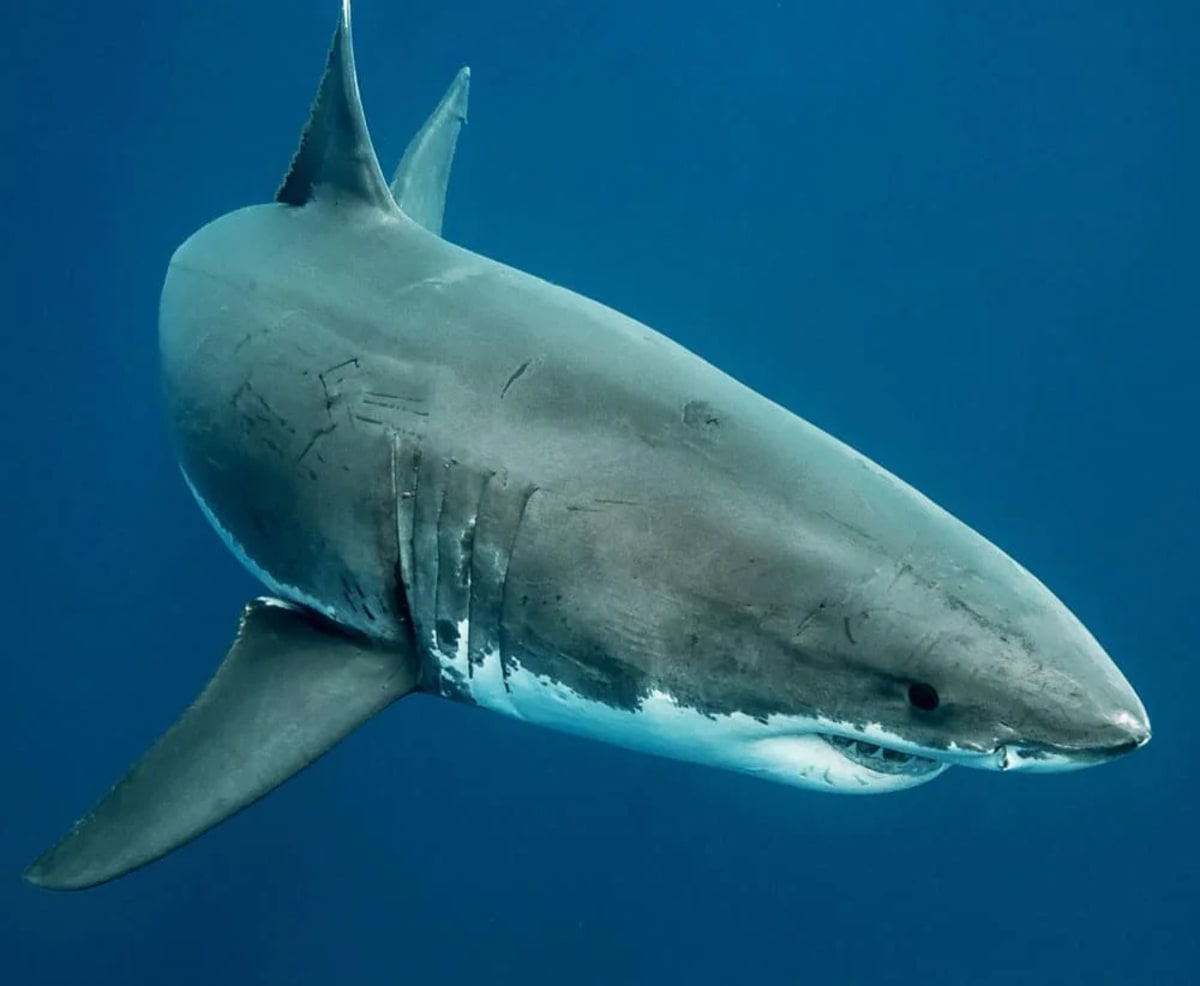 - El gran tiburón blanco (Carcharodon carcharias): Conocido por su tamaño imponente, que puede alcanzar los 6 metros de longitud, y su reputación temible, el gran tiburón blanco es un depredador formidable. Su dieta se basa principalmente en mamíferos marinos, como focas, leones marinos y delfines. Su poderosa mordida, capaz de ejercer una presión de hasta 1,8 toneladas por centímetro cuadrado, y su velocidad, que puede alcanzar los 56 km/h en ráfagas cortas, lo convierten en un cazador letal.